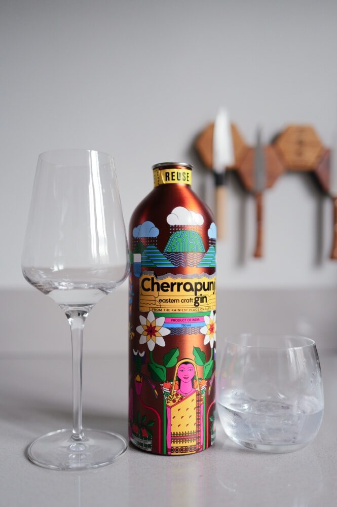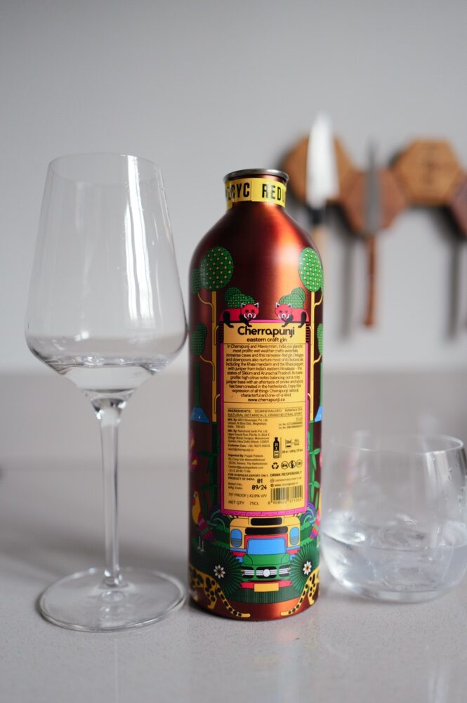 Cherrapunji bevat twaalf inheemse botanicals uit het noordoosten van India. Khasi mandarijn met GI-status (Geografische Aanduiding, zoals Champagne dat heeft). Kaji nemu, een aromatische limoen uit Assam, voor de citrusrand. Gerookte thee uit de Lushai-heuvels voor de donkere ondertoon.