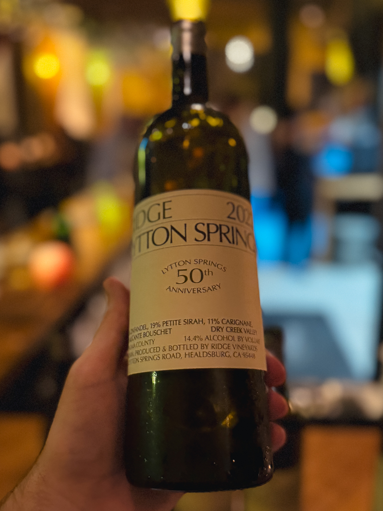 2022 Ridge Lytton Springs 50e Jubileum, Dry Creek Valley | 67% Zinfandel, 19% Petite Sirah, 11% Carignan, 3% Alicante Bouschet | 14,4%