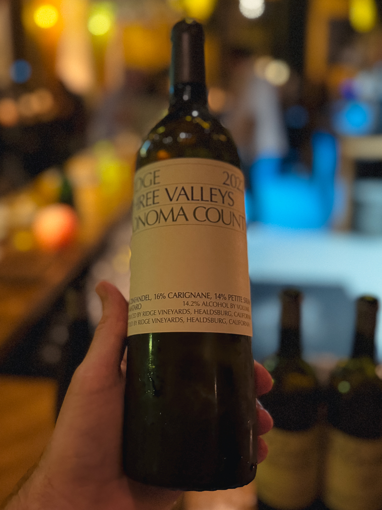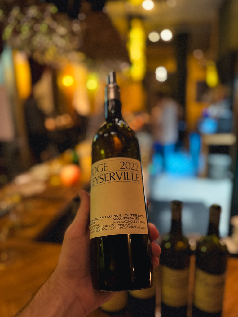 Winebar Vindict, Amsterdam, een woensdagavond. Op tafel staan acht flessen Ridge Vineyards. Jan Jaap Altenburg, eigenaar van Vindict en gastheer van vanavond, schenkt de eerste glazen in. Amerikaanse wijn op een Nederlandse kaart is nog steeds zeldzaam, dus ik ben blij met de uitnodiging.