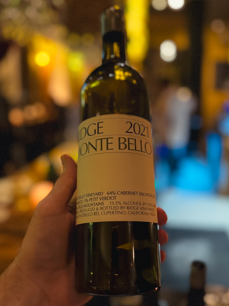 Het hoogtepunt van de avond ligt aan het eind van de rij: Monte Bello uit de Santa Cruz Mountains AVA. De druivensamenstelling verschilt per jaargang, maar Cabernet Sauvignon voert altijd de boventoon, aangevuld met Merlot, Petit Verdot en Cabernet Franc. Een klassieke Bordeaux-blend, op Californische bodem. De bijnaam: America’s First Growth. Vergelijkbaar met een Premier Cru.