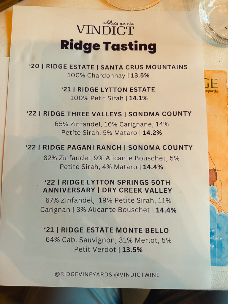Ik nam vooraf contact op met Katie Blakely, CSW en International Sales Director bij Ridge, voor extra context. Hieronder de avond zoals hij verliep, met proefnotities per fles.
