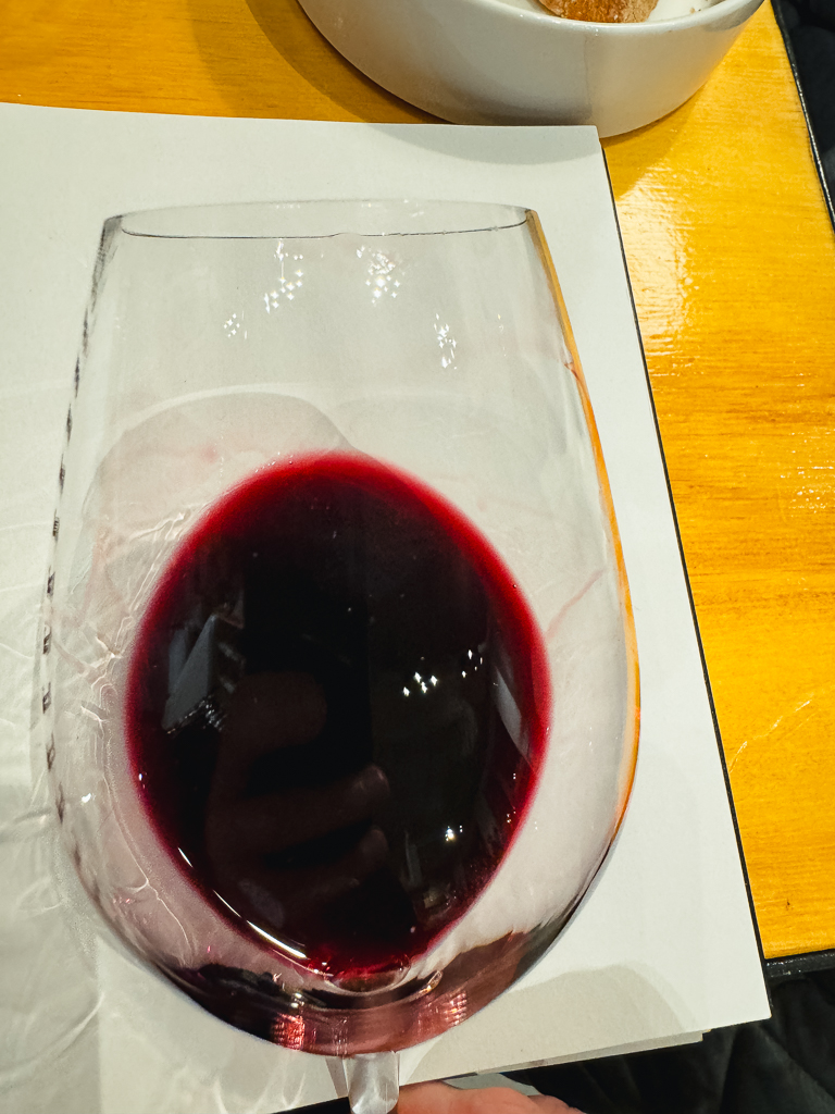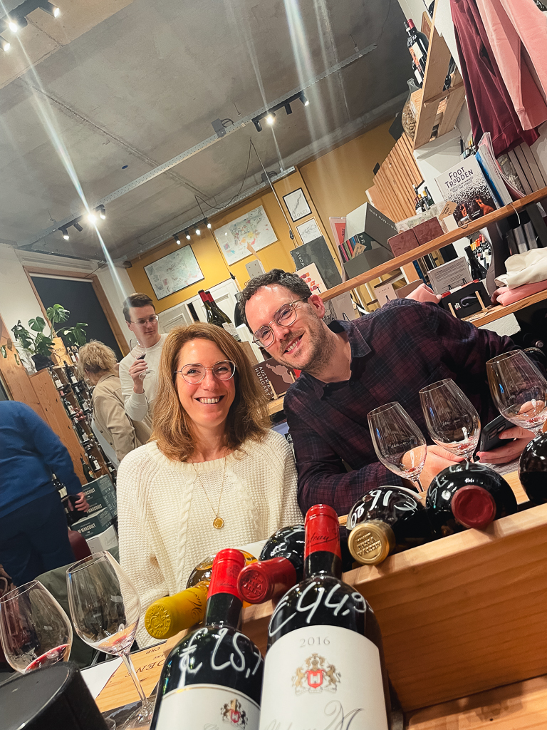 Vijf vluchten, opgebouwd van entry-level wit naar single-vineyard rood. Carmen vertelde bij elke wijn waar de stokken stonden en hoe het was vinifieerd; Jan Jaap kon nauwelijks stilstaan. Halverwege fles drie snapte ik waarom.