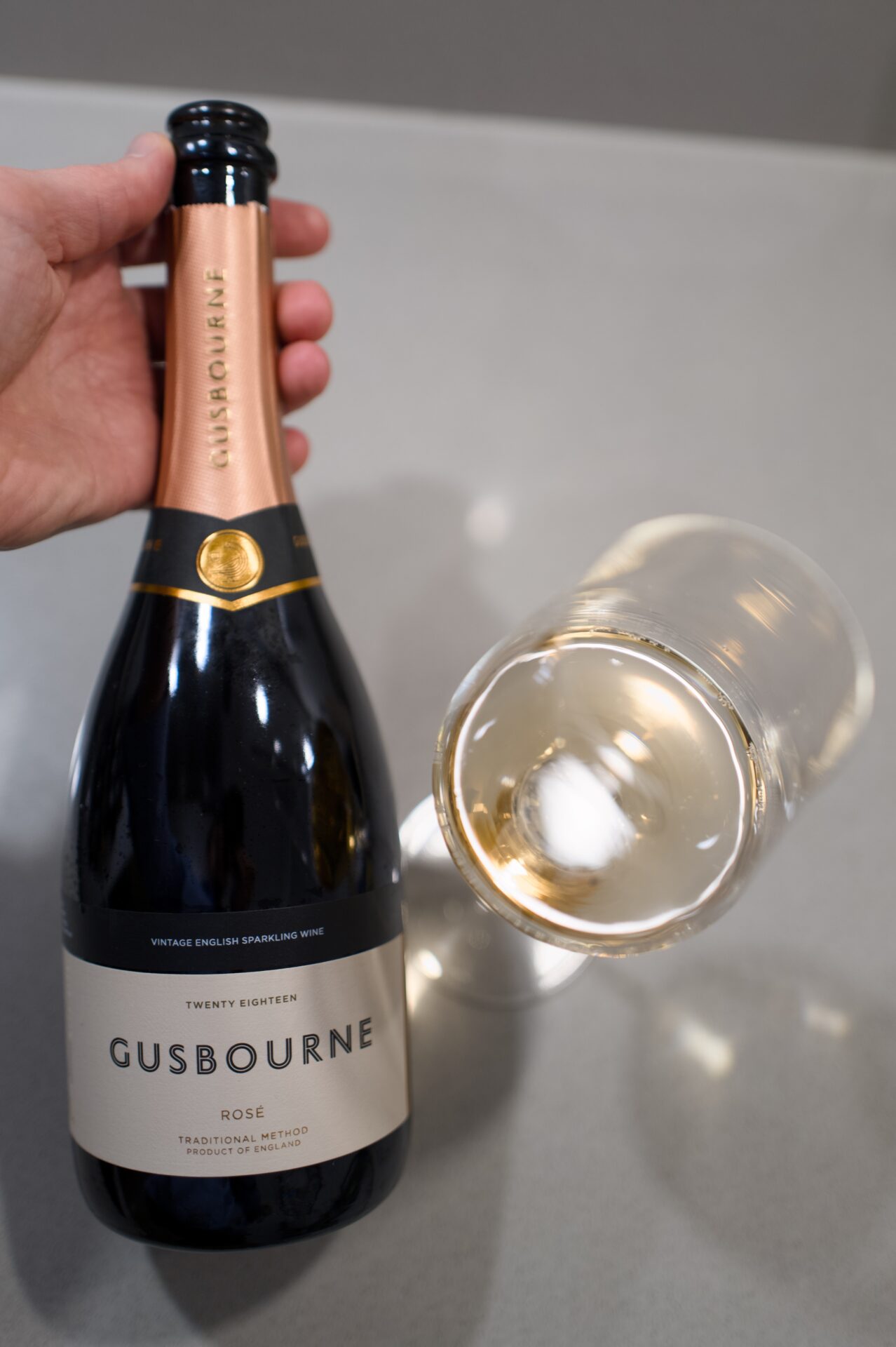 Geen blend van rood en wit, wat de standaard truc is in sparkling rosé-productie. Gusbourne maceert de donkere druiven, gecontroleerd op tijd en temperatuur, voor exact de juiste extractie. Te kort en de kleur valt bleek uit, te lang en je krijgt harde tannine. Het resultaat is echte zalmpink, geen artificieel felroze.