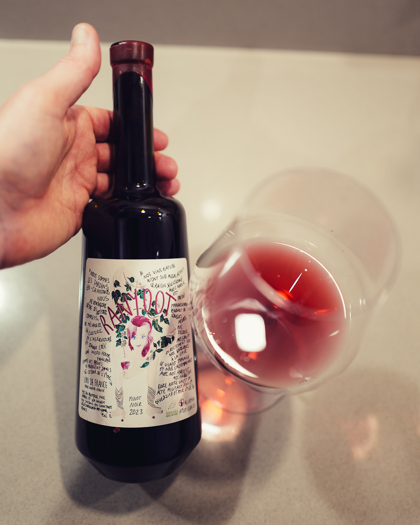 Voor de Ranyoot Pinot Noir kozen ze percelen met oudere stokken die diepte geven zonder zwaarte. De Pet’Gab’La komt uit het Sommerain lieu-dit in Nothalten, waar de zandkalkbodem de Pinot Auxerrois een zoutige spanning meegeeft.