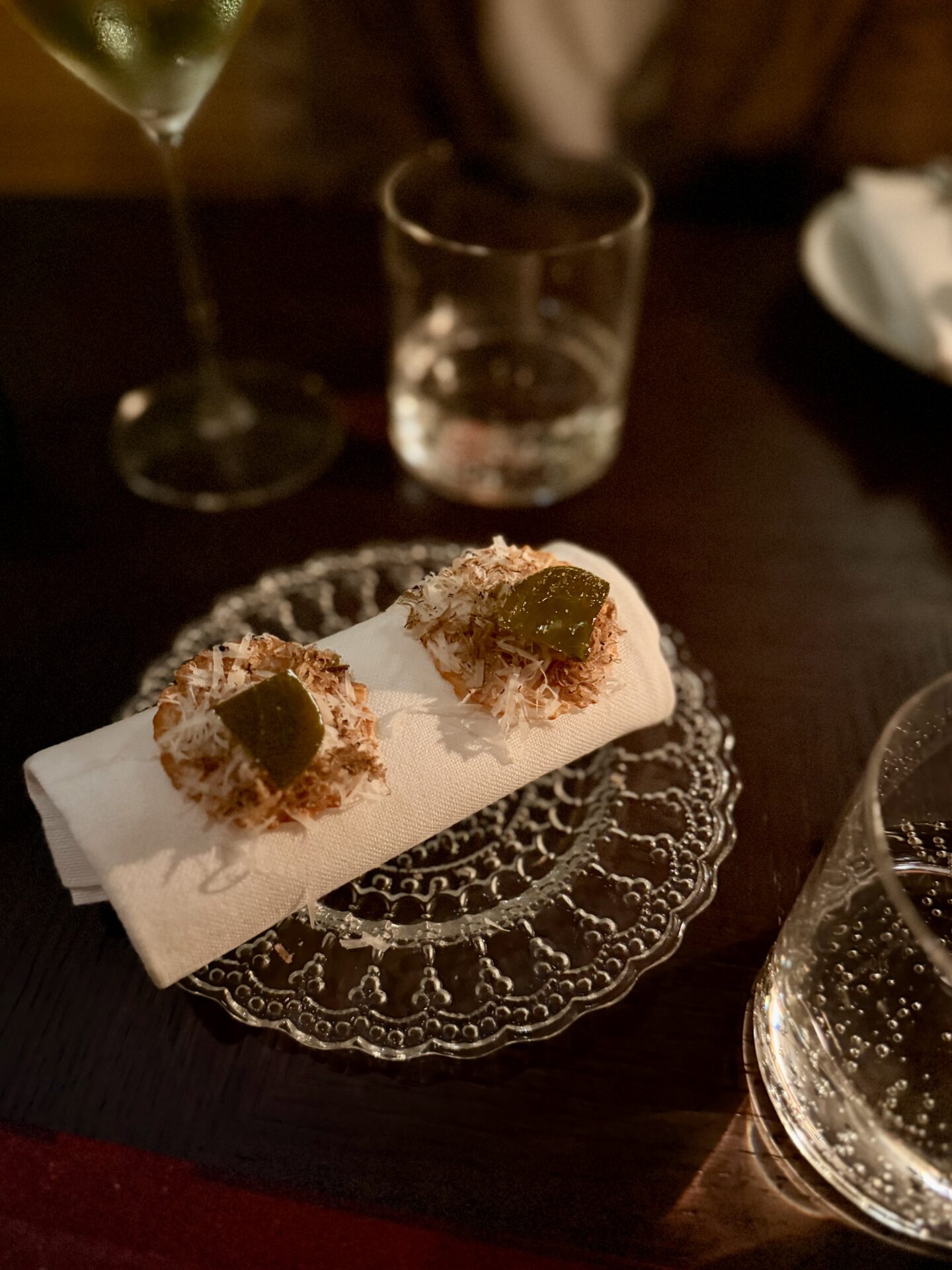 We begonnen met Michel Christò Trento DOC Brut 2021, en ik begreep meteen Lars’ aanpak. In plaats van standaard Prosecco of de voor de hand liggende Franciacorta, bood deze elegante mousseux uit Trentino verfijning zonder pretentie. Gemaakt van Pinot Noir en Chardonnay via de traditionele méthode (dezelfde techniek als Champagne), met delicate bubbels, frisse groene appelnoten en een vleugje amandel in de afdronk. Gecombineerd met Toet’s gerechtjes was het precies wat een aperitief moet zijn; levendig genoeg om je gehemelte wakker te maken, verfijnd genoeg om aan te geven dat je in goede handen bent.