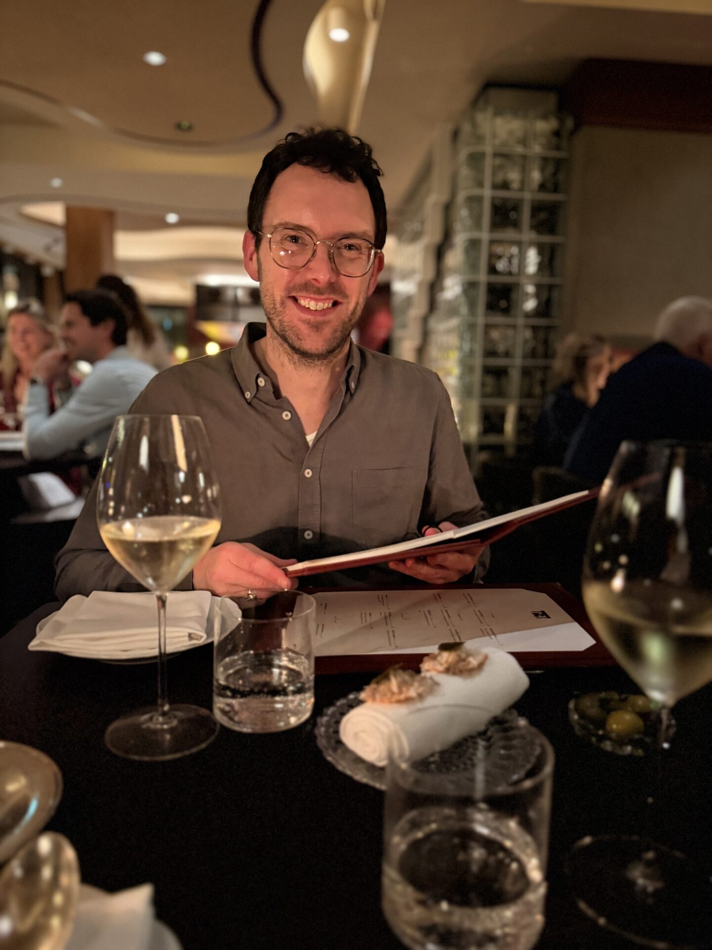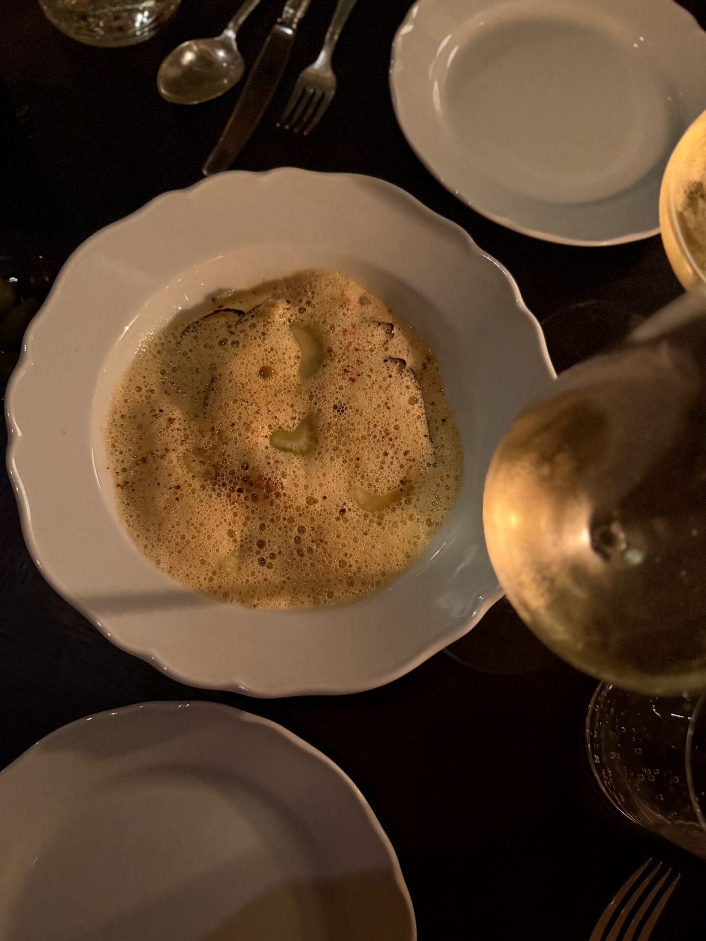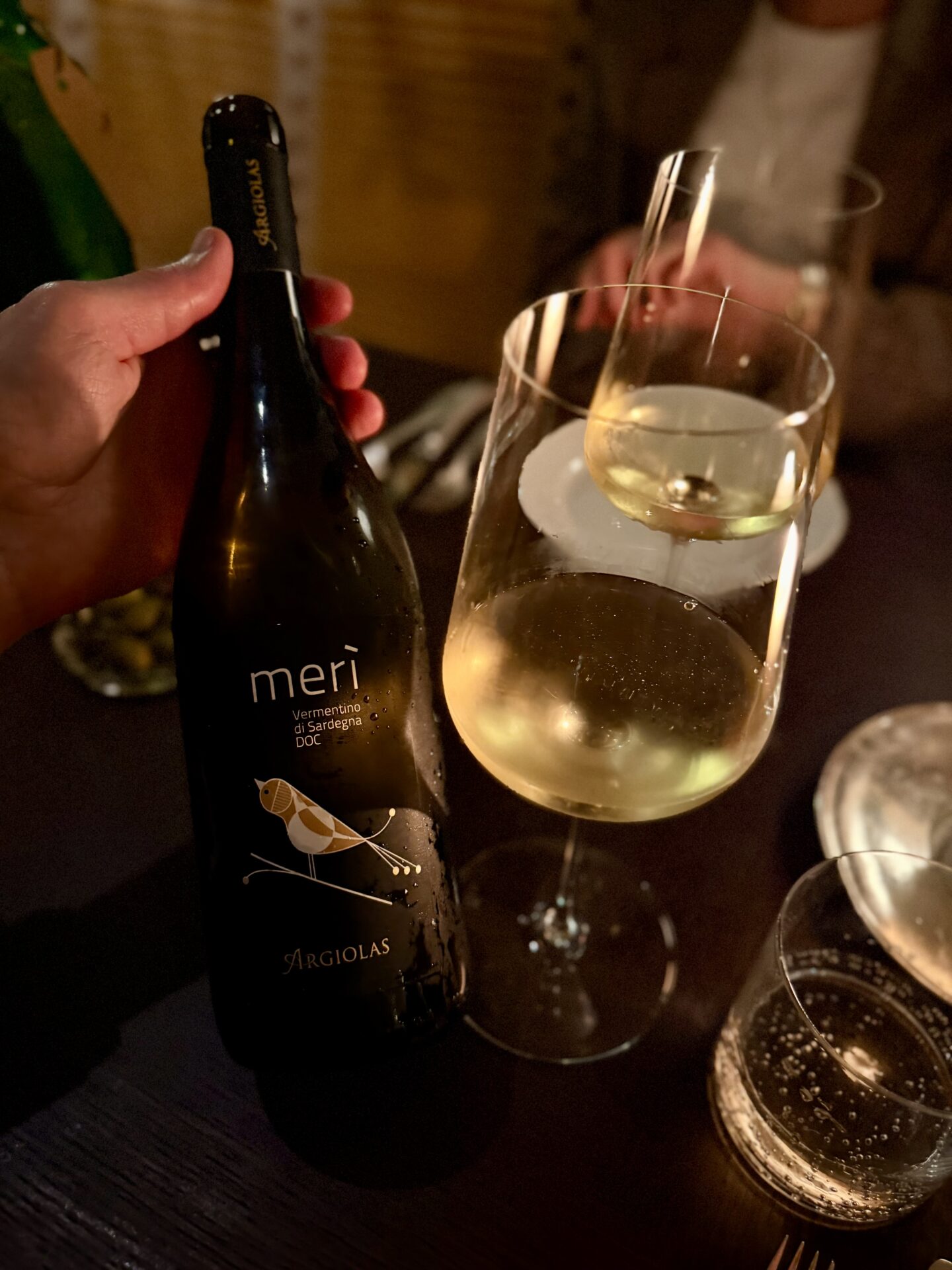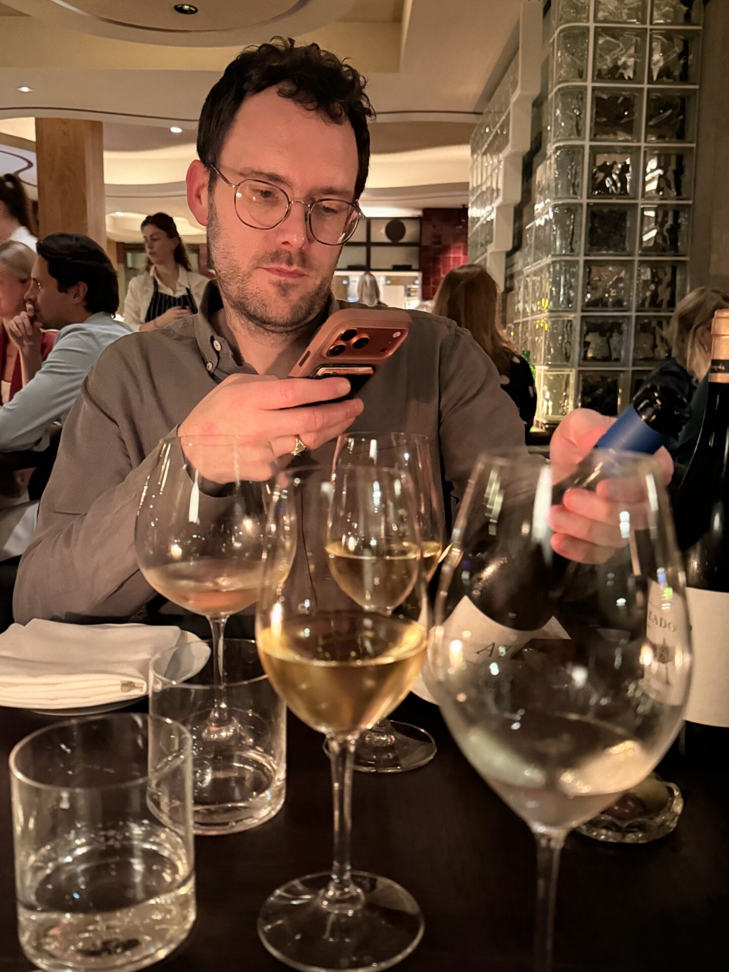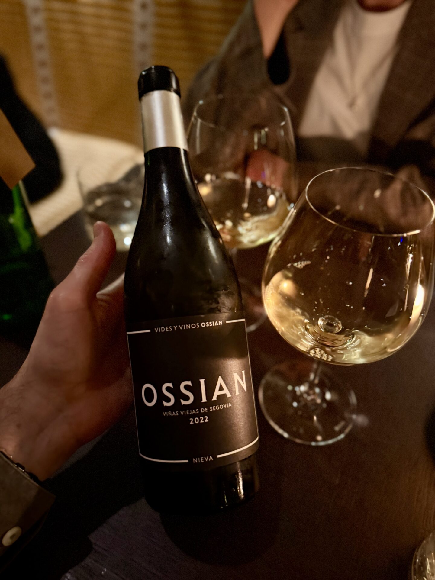De avond’s openbaring kwam met Ossian Viñas Viejas 2022, een Verdejo van oude wijnstokken in Segovia. Als je Verdejo kent als de gemakkelijke huismerkwit van Rueda, zet je schrap. Deze wijn uit oude wijngaarden bood honing-rijkdom, complexe nootachtige nuances en indrukwekkende structuur; meer als fijne witte Bourgogne dan typisch Spaans. Het eleveerde onze hoofdgerecht van rode mul met lardo di Colonnata dermate mooi dat Linda en ik werkelijk even pauzeerden om het te waarderen. Deze keuze toont Lars’ breedte; hij curateert alles van betaalbare ontdekkingen tot flessen voor verzamelaars.