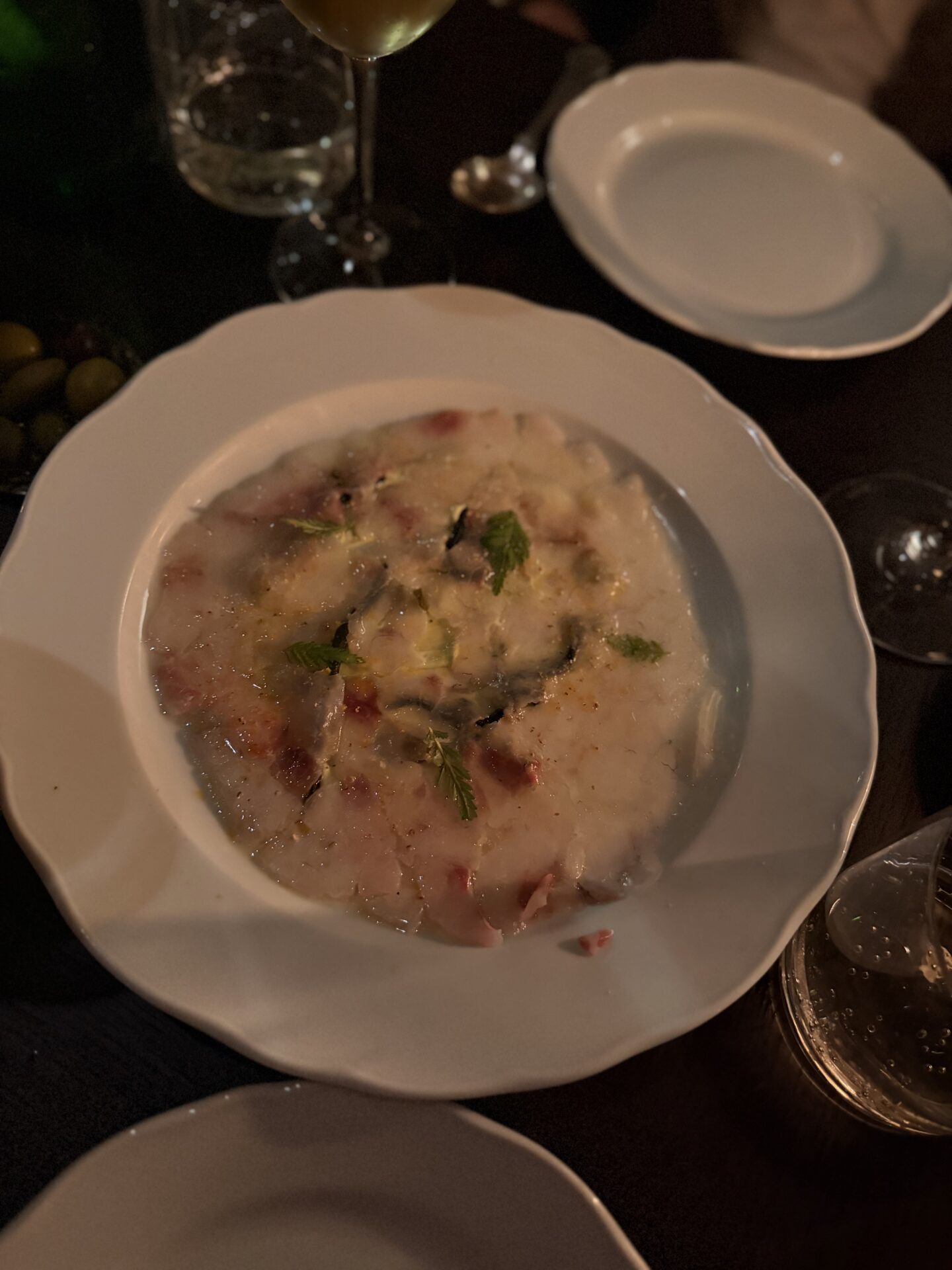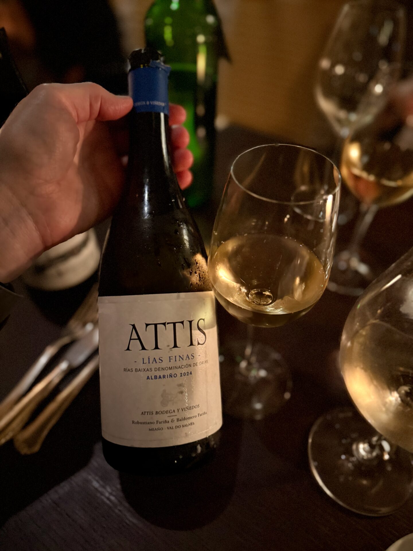We vergeleken het met de Attis Lías Finas Albariño 2024 uit Rías Baixas in Galicië. Deze Spaanse kustklassieker toonde alles wat Albariño het beste kan; snijdende zuurgraad, citroenbloesemaroma’s en die karakteristieke zeespray-mineraliteit. De aanduiding “lías finas” betekent dat de wijn op fijne droesem is gerijpt, wat subtiele textuur toevoegt. Beide witten bewezen ideale metgezellen voor onze seabass carpaccio met bottarga; de oceaan-invloedrijke wijnen echoën de maritieme ingrediënten perfect. De Albariño was zeer fruitig, warm en elegant. De Trenzado bood daarentegen meer spanning en schittering; een strijd tussen comfort en het durven verder te gaan.