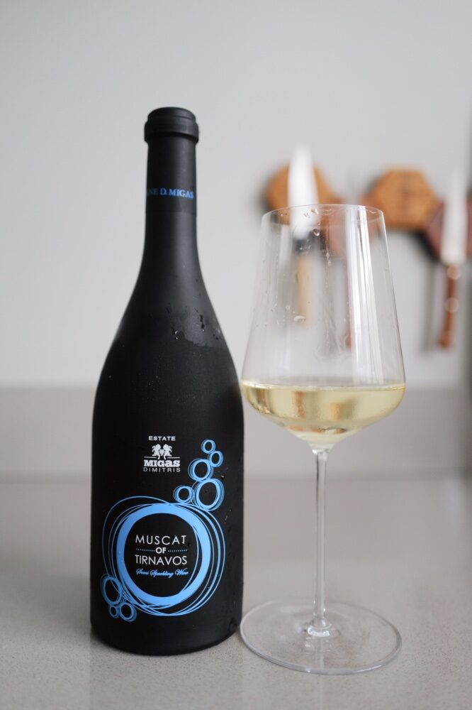 De Black Muscat van Tirnavos Half Mousserend (€16,50) hanteert een ander uitgangspunt. Deze halfmousserende schoonheid toont meer terughoudendheid in de neus vergeleken met het stille equivalent; tropische vrucht en citrus schijnen nog steeds, met perzik- en nectarinenoten, plus die aardse tonen en een duidelijk zoeter, snoepachtig karakter. Op de smaak herinnerde de elegante zoetheid me aan Moscato d’Asti, hoewel deze Griekse versie intrigerende venkel- en anijsnuances toevoegt. Bij 11% alcohol met fijne bubbels is het opvallend veelzijdig; perfect bij frisse salades, zeevruchten, fruit, banketwerk of als aperitief. Ik geef toe dat de zoetheid niet mijn persoonlijke voorkeur is, maar ik waardeer de elegante uitvoering enorm en begrijp volkomen waarom liefhebbers van halfdroge mousserende wijnen ervan zouden genieten.