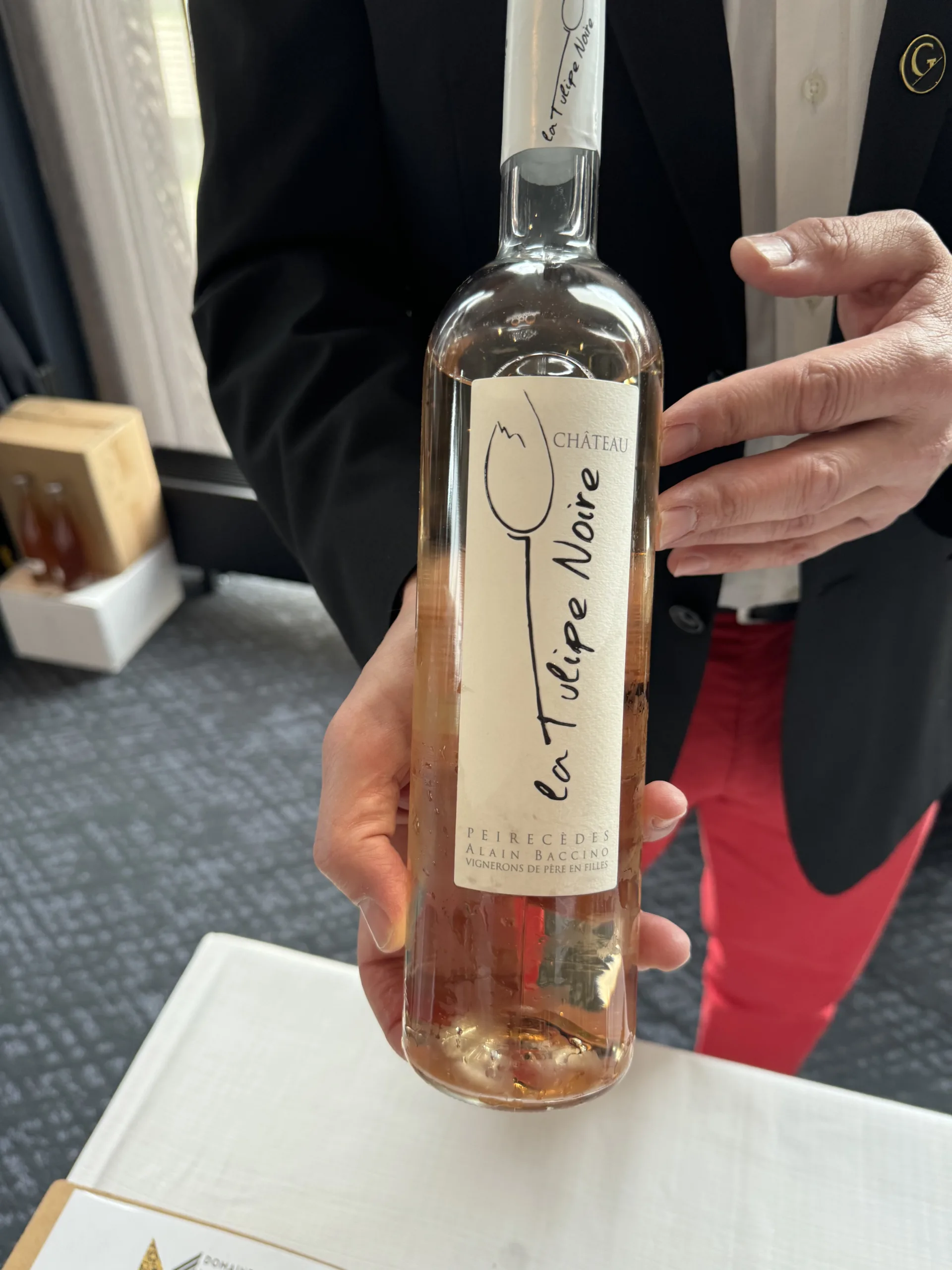 Een prachtige Provence-rosé met herkenbare kleur maar veel kruideriger en intenser bouquet en smaak. De combinatie van Tibouren, Grenache en Cinsault zorgt hiervoor; vooral Tibouren geeft die karakteristieke geur en smaak, aldus Jean Francois. Deze rosé drink je puur of combineert je met verschillende gerechten. Het ultieme wijntje waar een zon erg aangenaam is.